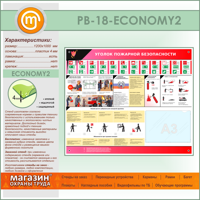Стенд «Уголок пожарной безопасности» с карманом А3 формата (PB-18-ECONOMY2) в Пензе купить