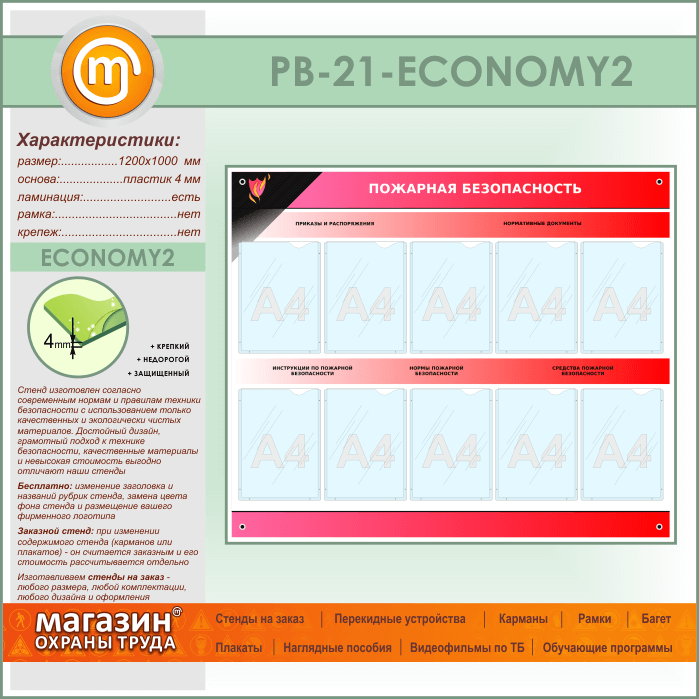Стенд «Пожарная безопасность» с 10 карманами (PB-21-ECONOMY2) в Пензе купить