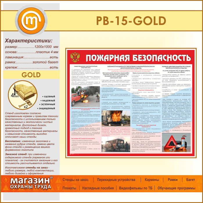 Стенд «Пожарная безопасность на автотранспорте» (PB-15-GOLD) в Пензе купить