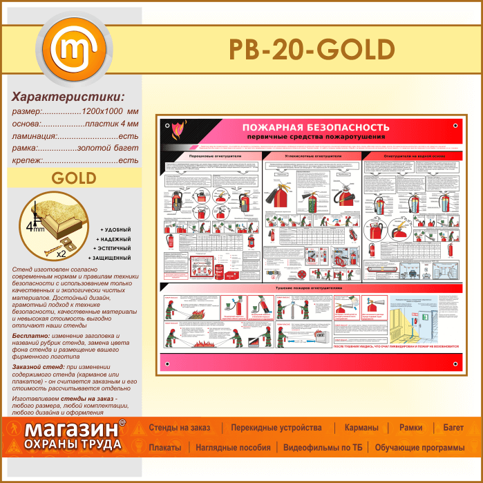 Стенд «Пожарная безопасность. Первичные средства пожаротушения» (PB-20-GOLD) в Пензе купить