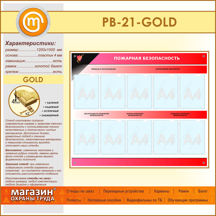 Стенд «Пожарная безопасность» с 10 карманами (PB-21-GOLD) в Пензе купить