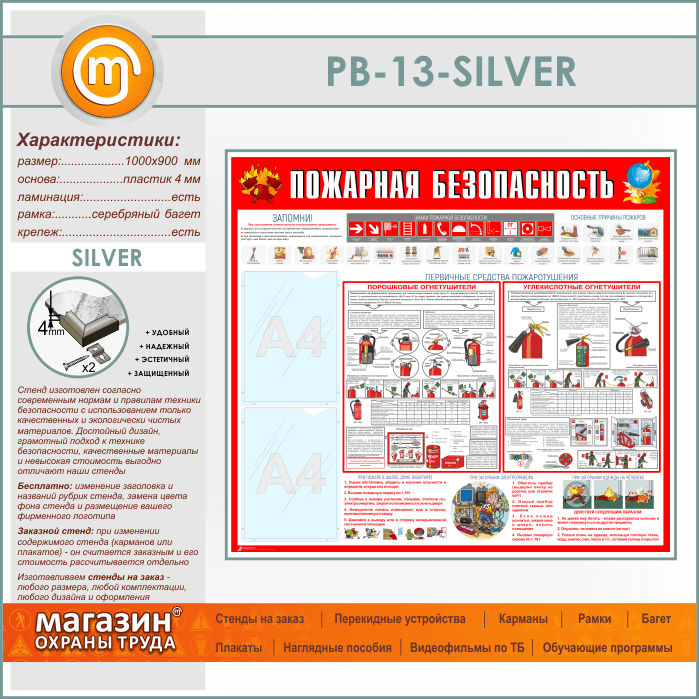 Стенд «Пожарная безопасность» с 2 карманами (PB-13-SILVER) в Пензе купить