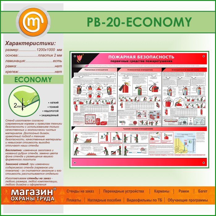 Стенд «Пожарная безопасность. Первичные средства пожаротушения» (PB-20-ECONOMY) в Пензе купить