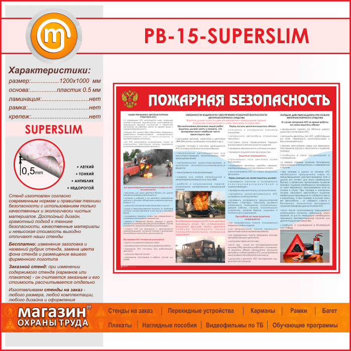 Стенд «Пожарная безопасность на автотранспорте» (PB-15-SUPERSLIM) в Пензе купить