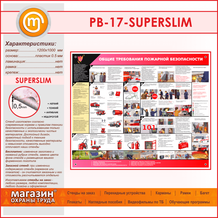 Стенд «Общие требования пожарной безопасности» (PB-17-SUPERSLIM) в Пензе купить