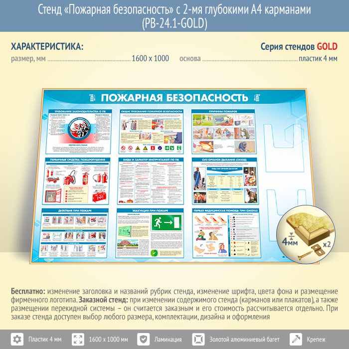 Стенд «Пожарная безопасность» с 2-мя глубокими А4 карманами (PB-24.1-GOLD) в Пензе купить