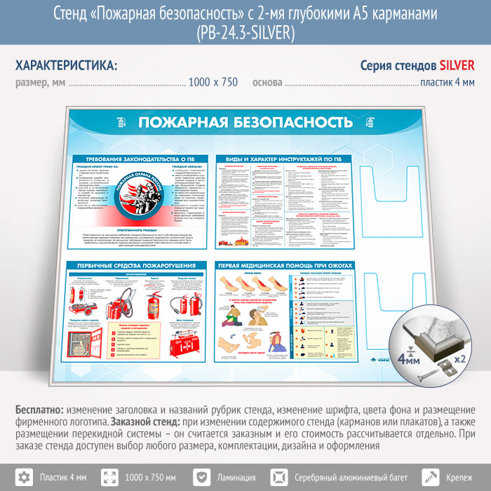 Стенд «Пожарная безопасность» с 2-мя глубокими А5 карманами (PB-24.3-SILVER) в Пензе купить