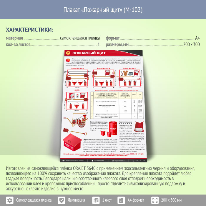 Плакат «Пожарный щит» (М-102, самоклеящаяся пленка, А4, 1 лист) в Пензе купить