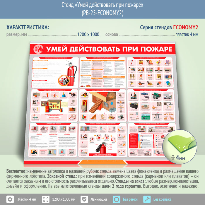 Стенд «Умей действовать при пожаре» (PB-25-ECONOMY2) в Пензе купить