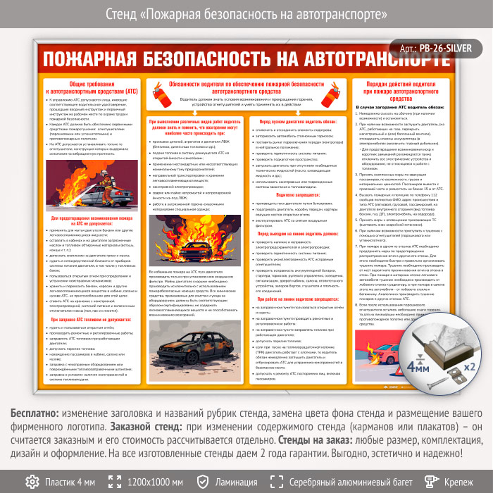 Стенд «Пожарная безопасность на автотранспорте» (PB-26-SILVER) в Пензе купить