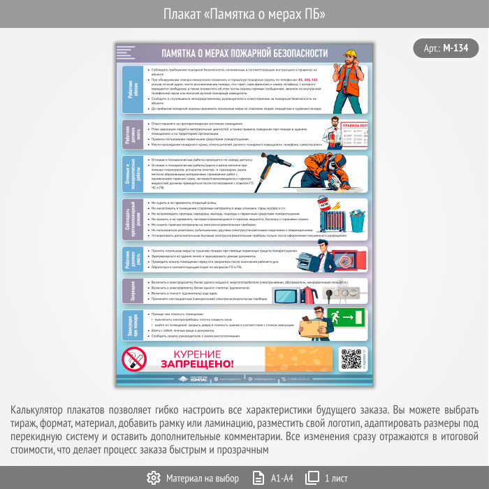 Плакат «Памятка о мерах ПБ» с QR (М-134, 1 лист) в Пензе купить