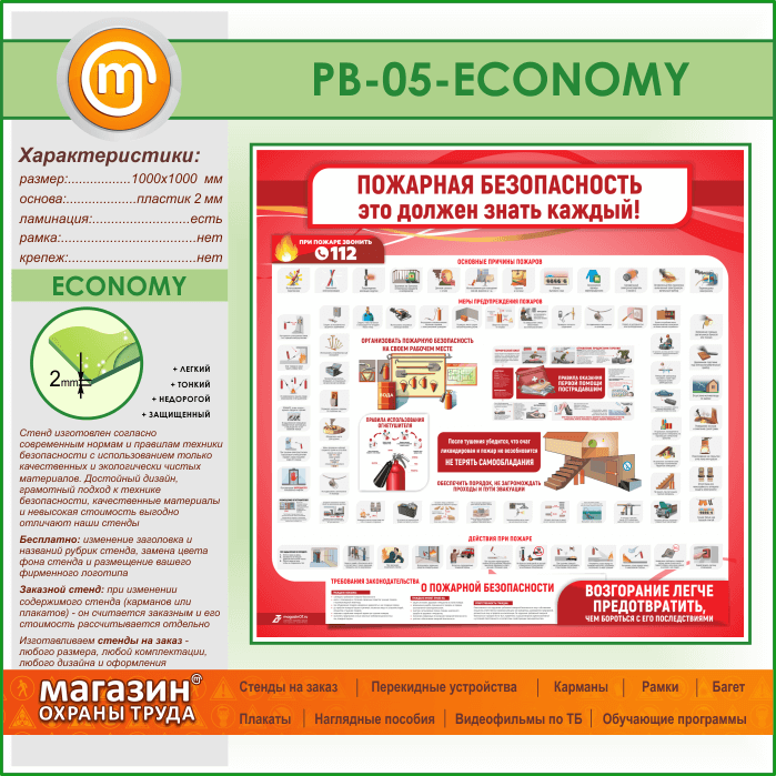 Стенд «Пожарная безопасность. Это должен знать каждый» (PB-05-ECONOMY) в Пензе купить