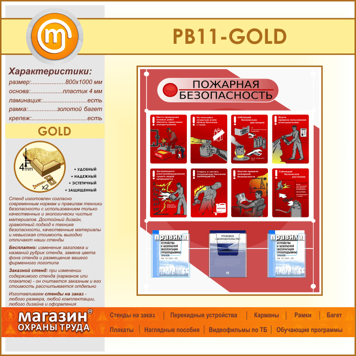 Стенд «Стенд пожарная безопасность в строительстве» с 3 объемными карманами (PB-11-GOLD) в Пензе купить