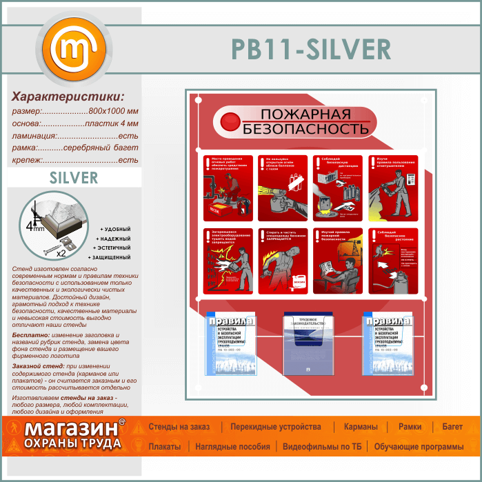 Стенд «Стенд пожарная безопасность в строительстве» с 3 объемными карманами (PB-11-SILVER) в Пензе купить