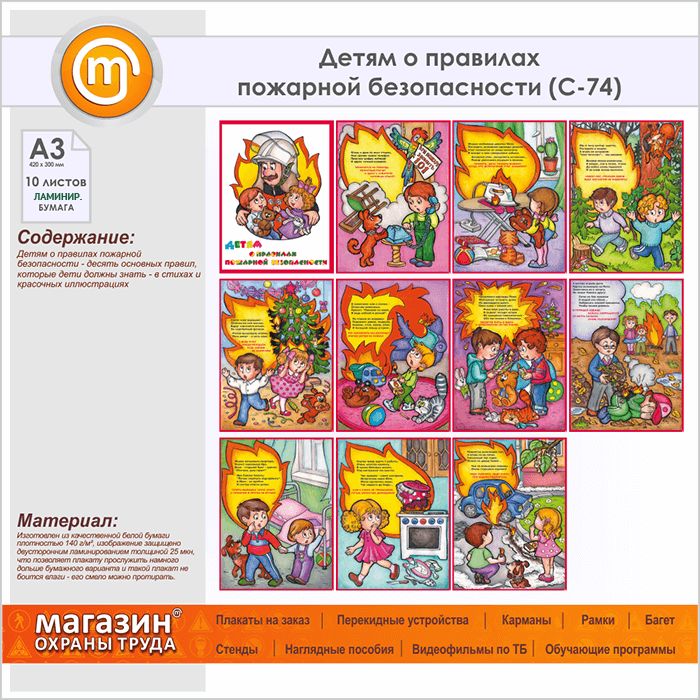 Плакаты «Детям о правилах пожарной безопасности» (С-74, ламинированная бумага, А3, 10 листов) в Пензе купить
