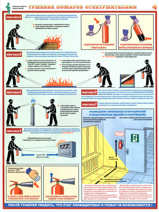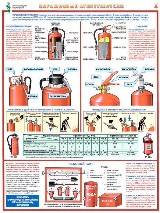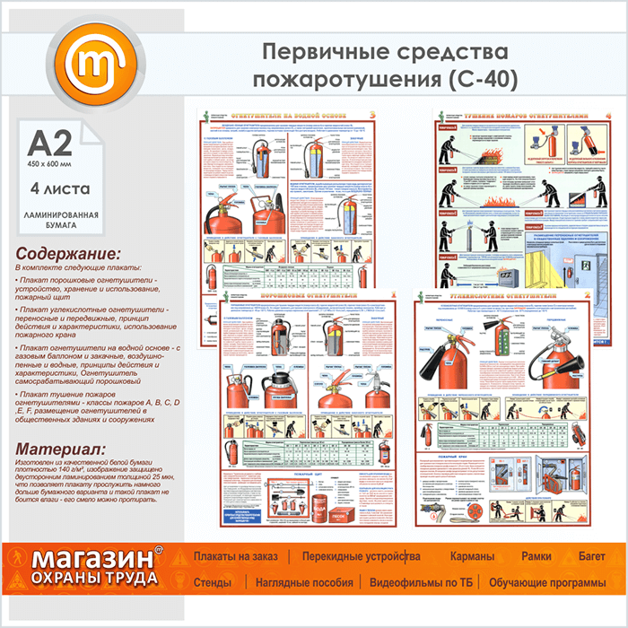 Плакаты «Первичные средства пожаротушения» (С-40, ламинированная бумага, А2, 4 листа) в Пензе купить