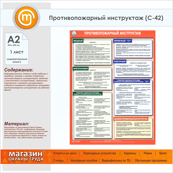Плакат «Противопожарный инструктаж» (С-42, ламинированная бумага, А2, 1 лист) в Пензе купить
