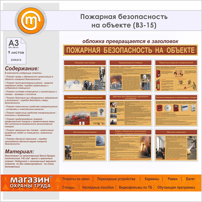 Плакаты «Пожарная безопасность на объекте» (ВЗ-15, бумага, А3, 10 листов) в Пензе купить