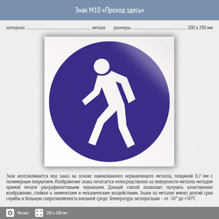 Знак M10 «Проход здесь» (металл, 200х200 мм) в Пензе купить