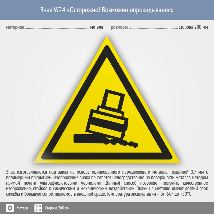 Знак W24 «Осторожно! возможно опрокидывание» (металл, сторона 200 мм) в Пензе купить