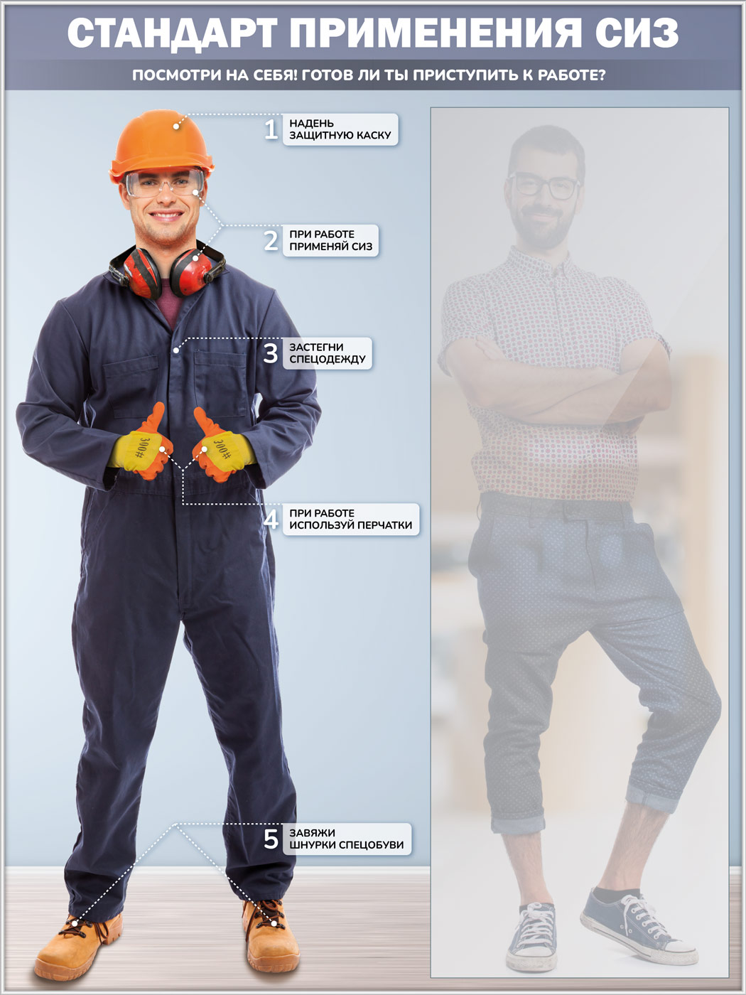 Стенд для демонстрации применения СИЗ с зеркалом, 1500х2000 мм в серебряном багете (СПС-01-С) в Пензе купить