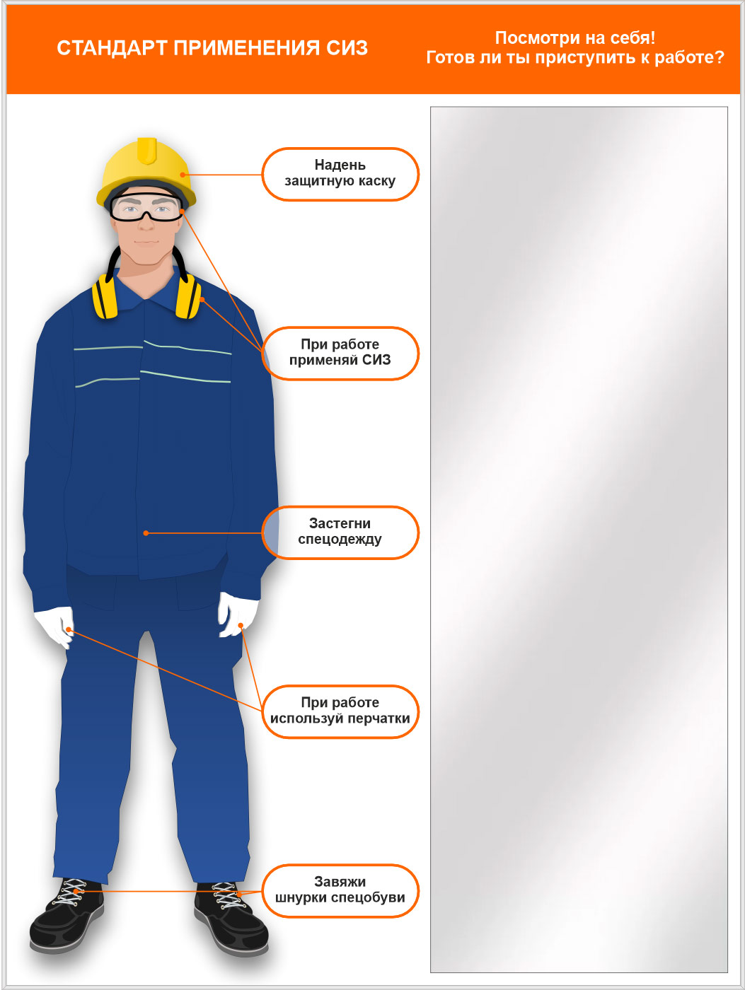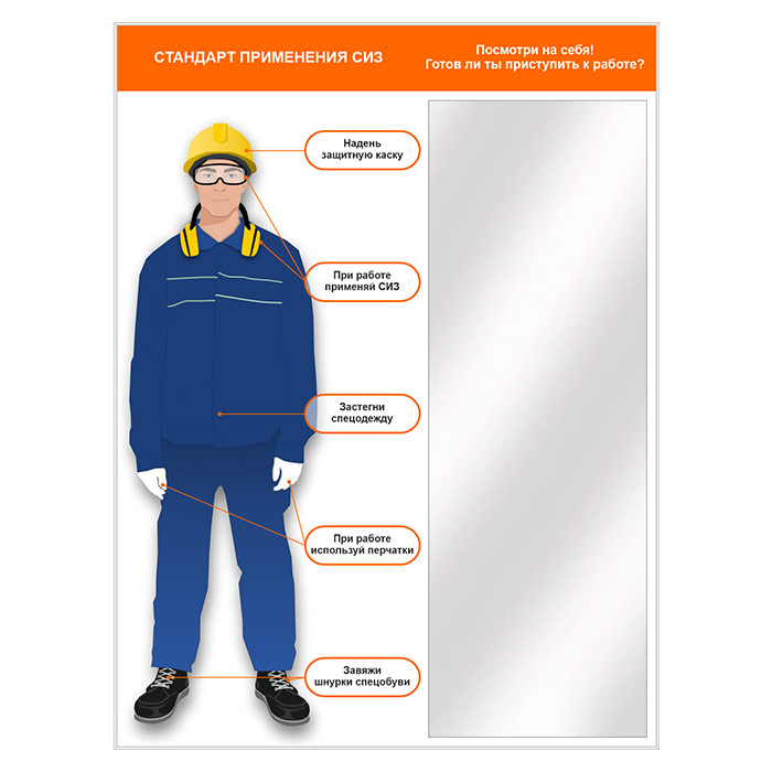 Стенд для демонстрации применения СИЗ с зеркалом, 1500х2000 мм в серебряном багете (СПС-01.2-С) в Пензе купить