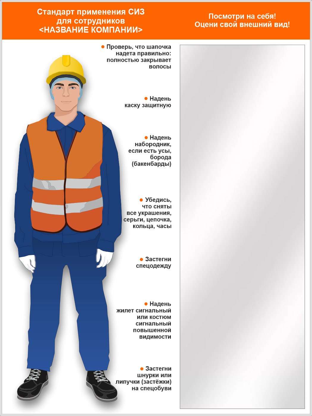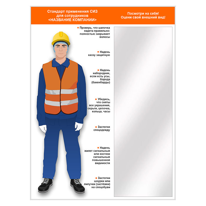 Стенд для демонстрации применения СИЗ с зеркалом, 1500х2000 мм в серебряном багете (СПС-02.2-С) в Пензе купить