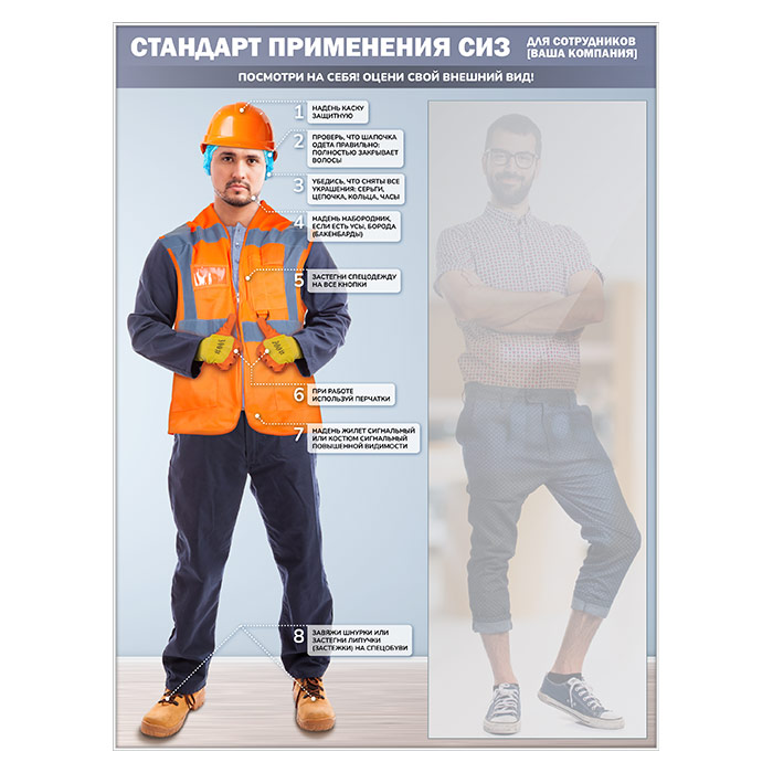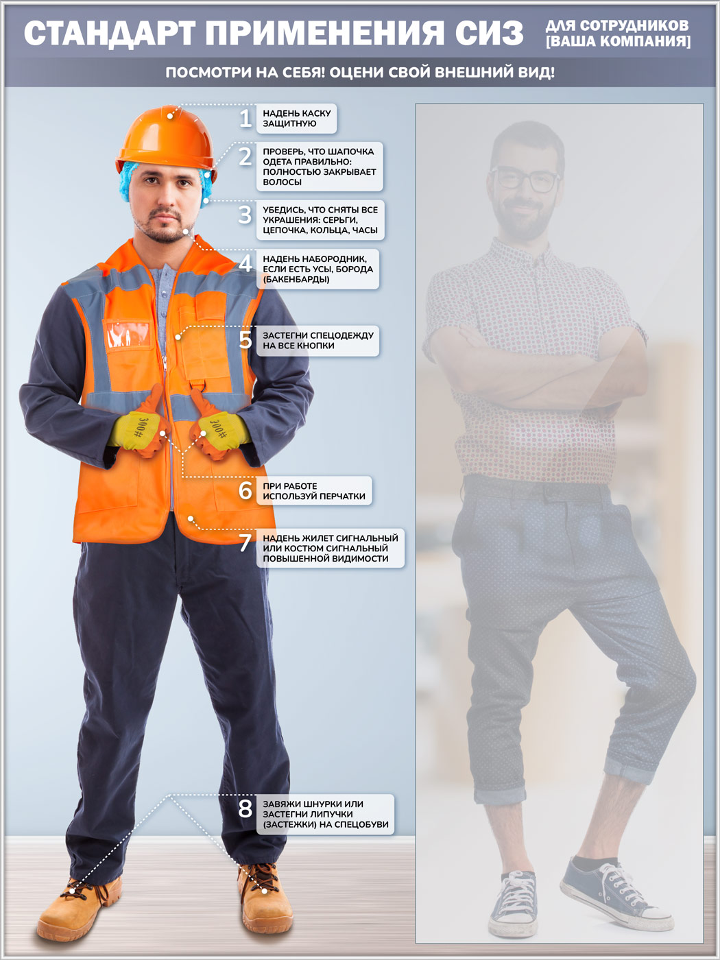 Стенд для демонстрации применения СИЗ с зеркалом, 1500х2000 мм в серебряном багете (СПС-03-С) в Пензе купить