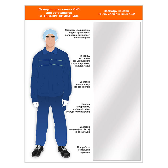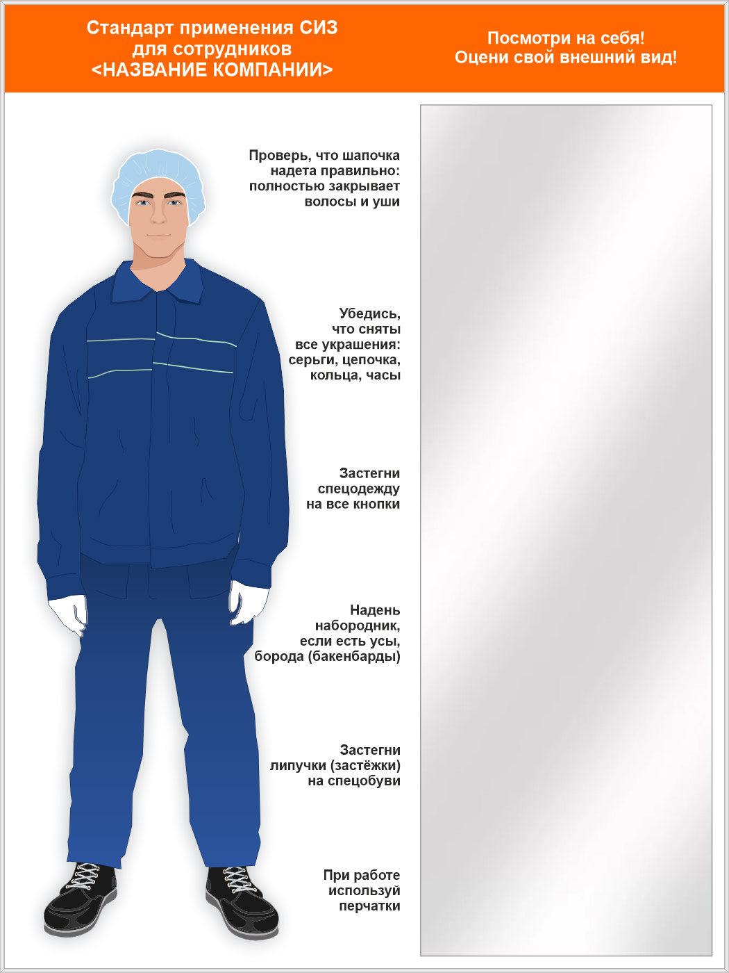 Стенд для демонстрации применения СИЗ с зеркалом, 1500х2000 мм в серебряном багете (СПС-03.2-С) в Пензе купить