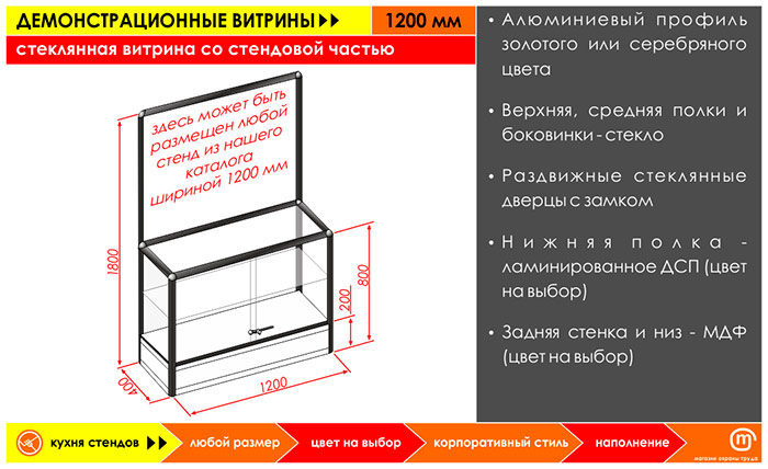 Стеклянная витрина со стендовой частью, 1200 мм в Пензе купить