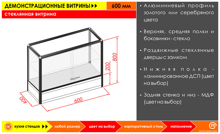 Стеклянная витрина, 600 мм в Пензе купить