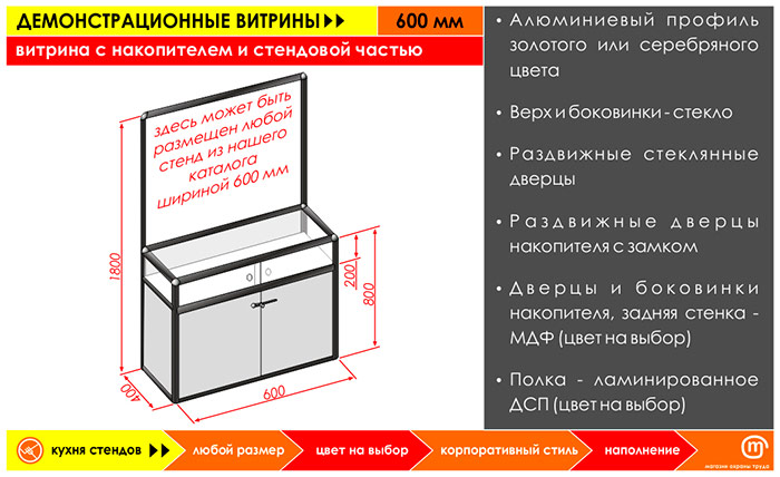 Витрина с накопителем и стендовой частью, 600 мм в Пензе купить