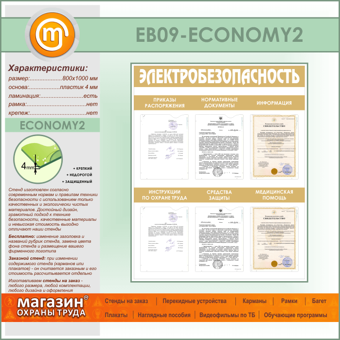 Стенд «Электробезопасность» с 6 карманами (EB-09-ECONOMY2)