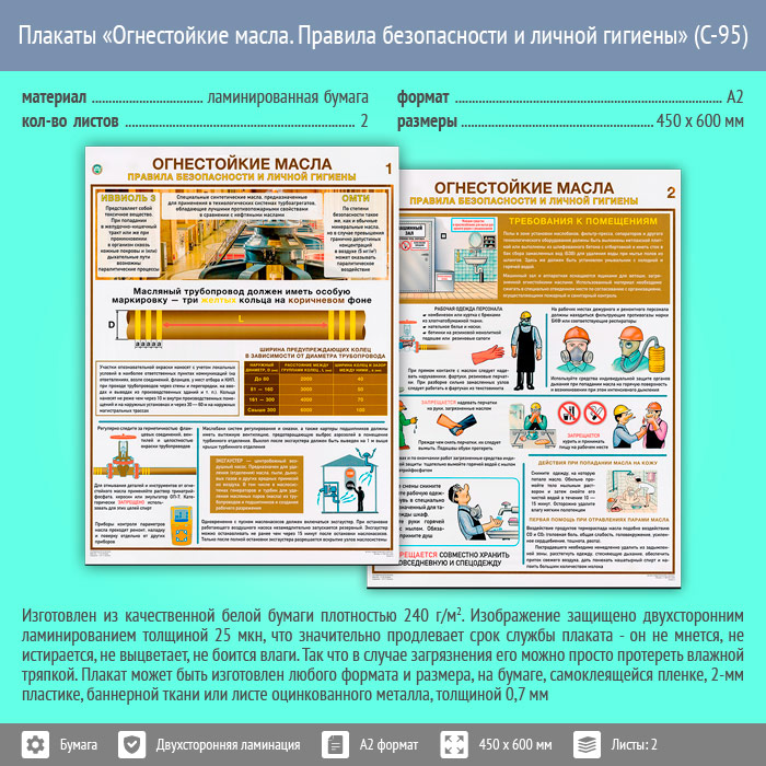 Плакаты «Огнестойкие масла. Правила безопасности и личной гигиены» (С-95, ламинированная бумага, А2, 2 листа) в Пензе купить