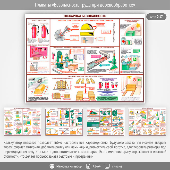 Плакаты «Безопасность труда при деревообработке» (С-17, 5 листов) в Пензе купить