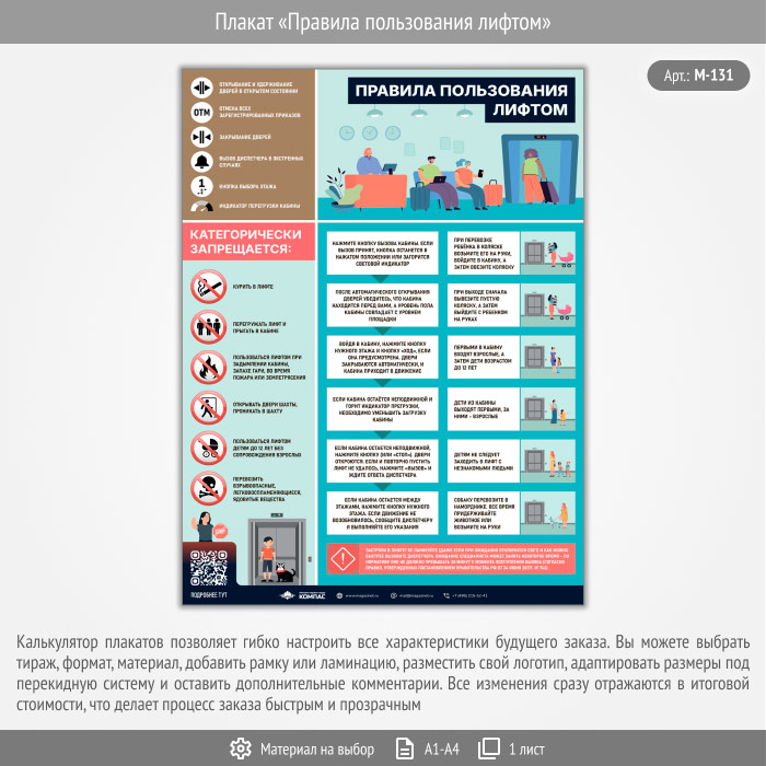 Плакат «Правила пользования лифтом» с QR (М-131, 1 лист) в Пензе купить