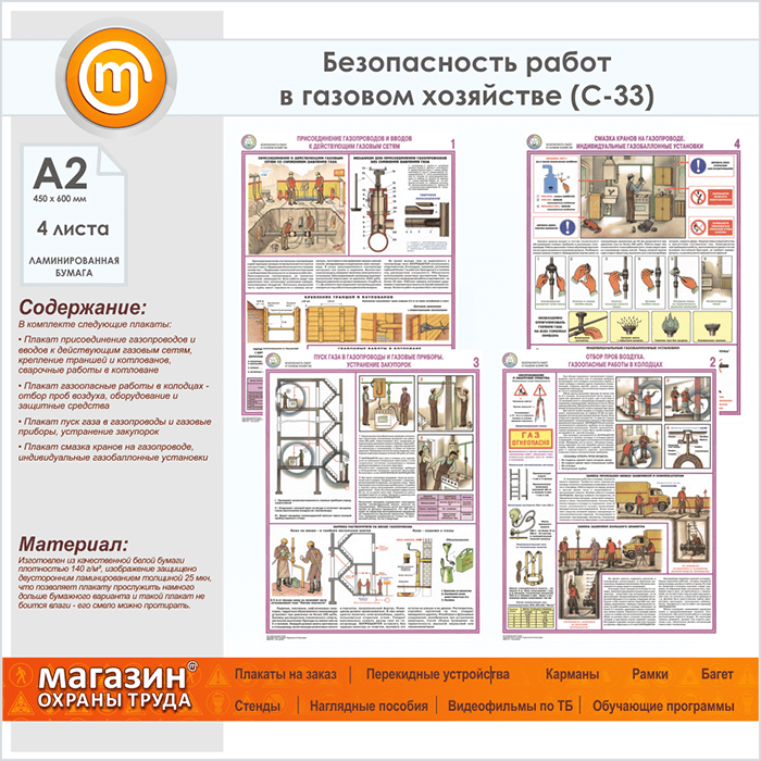 Плакаты «Безопасность работ в газовом хозяйстве» (С-33, ламинированная бумага, А2, 4 листа) в Пензе купить