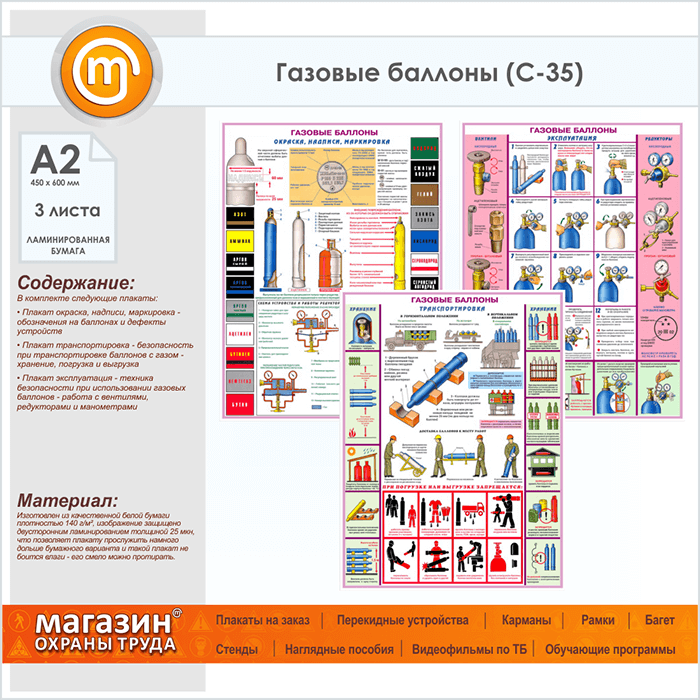 Плакаты «Газовые баллоны» (С-35, ламинированная бумага, А2, 3 листа) в Пензе купить
