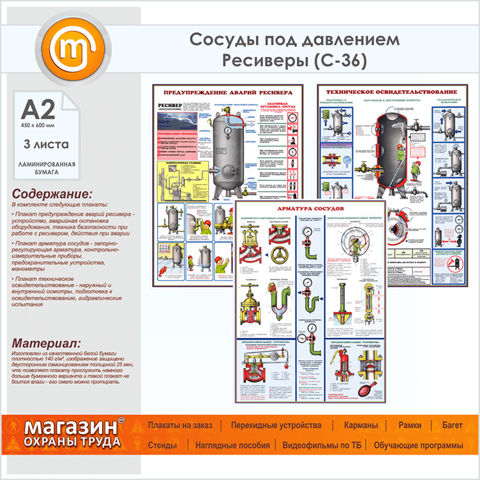 Плакаты «Сосуды под давлением. Ресиверы» (С-36, ламинированная бумага, А2, 3 листа) в Пензе купить