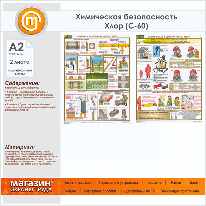 Плакаты «Химическая безопасность. Хлор» (С-60, ламинированная бумага, А2, 2 листа) в Пензе купить