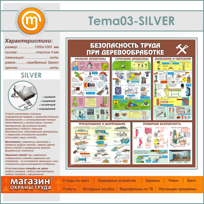 Стенд «Безопасность труда при деревообработке» (TM-03-SILVER) в Пензе купить