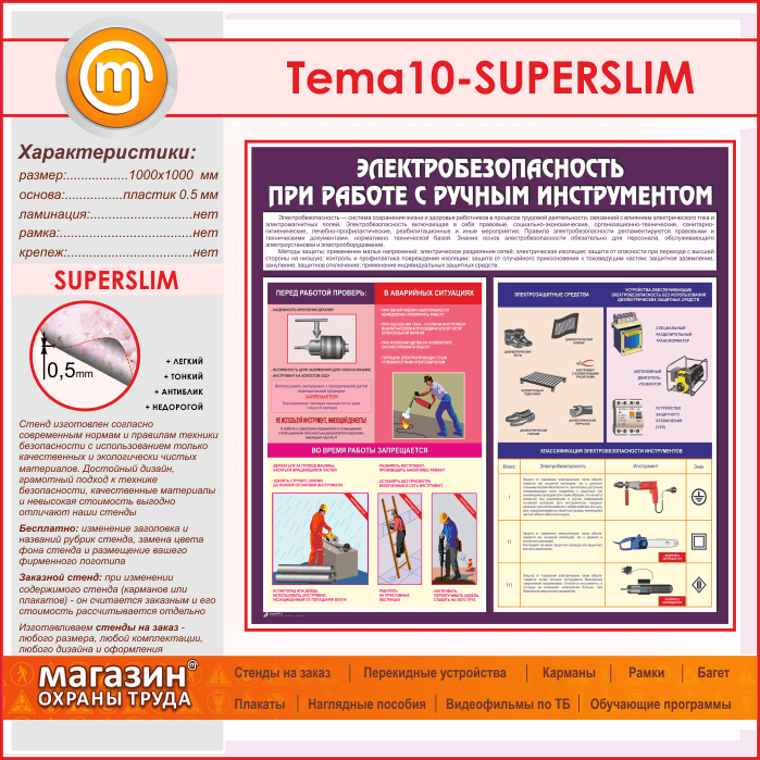 Стенд «Электробезопасность при работе с ручным инструментом» (TM-10-SUPERSLIM) в Пензе купить