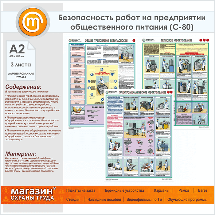 Плакат « Правила охраны труда на предприятии общественного питания» (С-80, ламинированная бумага, А2, 3 листа) в Пензе купить