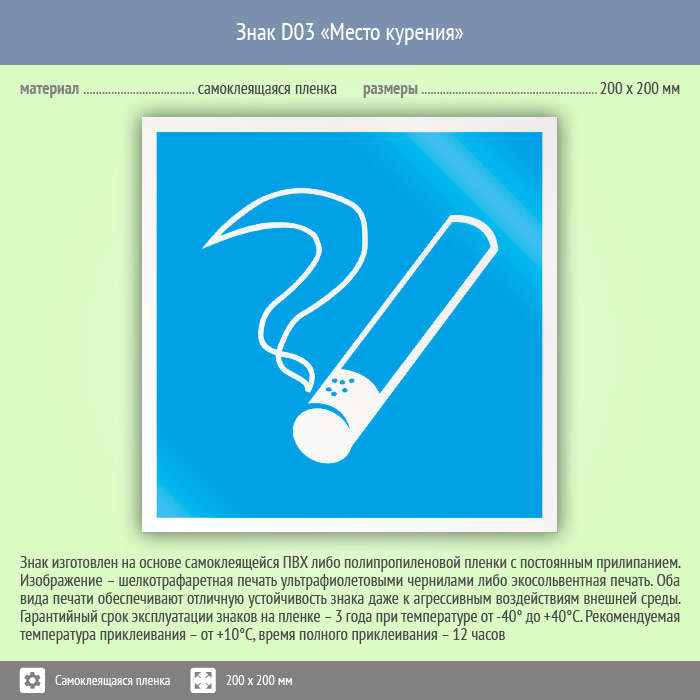 Знак D03 «Место курения» (пленка, 200х200 мм) в Пензе купить