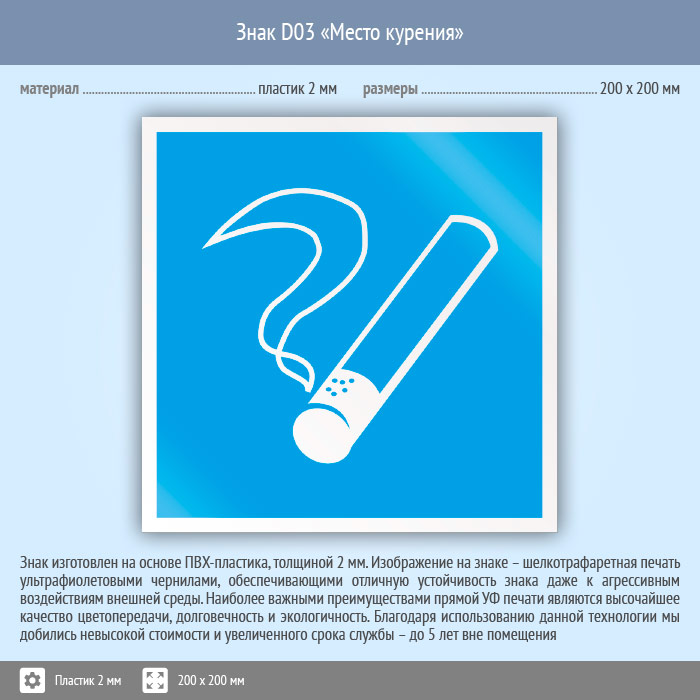 Знак D03 «Место курения» (пластик, 200х200 мм) в Пензе купить