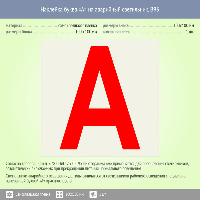 Наклейка буква «А» на аварийный светильник, B93 (пленка, 100х100 мм) в Пензе купить