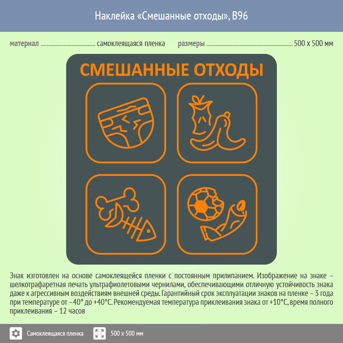 Наклейка на бак «Смешанные отходы», B96 (пленка, 500х500 мм) в Пензе купить