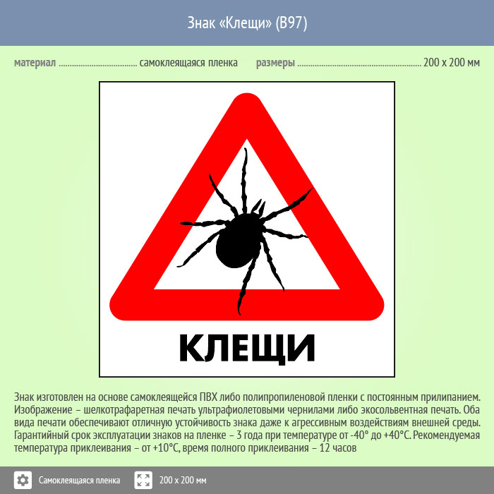 Знак «Клещи», B97 (пленка, 300х300 мм) в Пензе купить