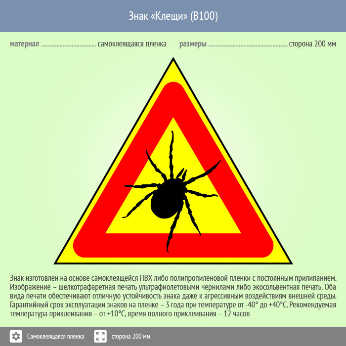 Знак «Опасно! Клещи», B100 (пленка, сторона 300 мм) в Пензе купить