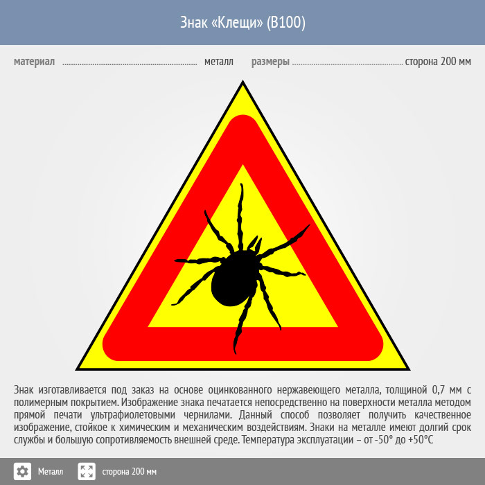 Знак «Опасно! Клещи», B100 (металл, сторона 300 мм) в Пензе купить